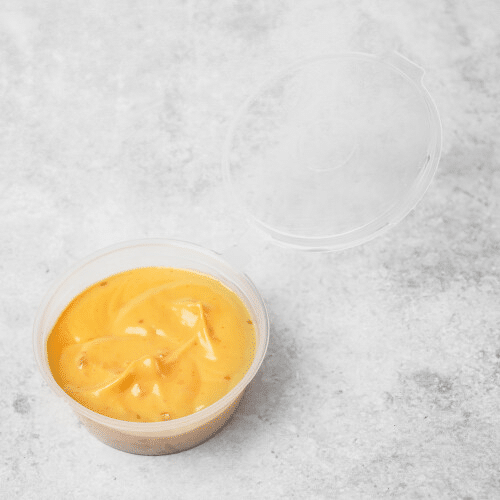 1 tranche de bœuf, sauce au choix, oignons caramélisés, poivron, cheddar, fromage raclette.